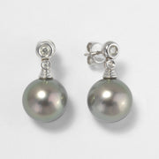 Arete oro blanco 14k con perla negra 12 mm y 0.21ct de brillante