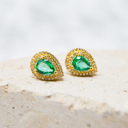 Aretes oro 14 K 92 diamantes .66 CT Y 2 esmeraldas 1.93 CT