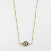 Cadena 14KA c/ .18ct de zafiro y 0.04ct brillante ojo de Dios