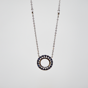 Dije zafiro y diamantes de 0.45 CT y oro blanco de 18K