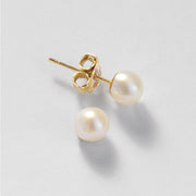 Broquel perla cultivada redonda blanca 4.5 mm montada en oro 14K