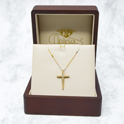 Collar cruz con cadena torsal. Brillantes .10CT y oro 14K.